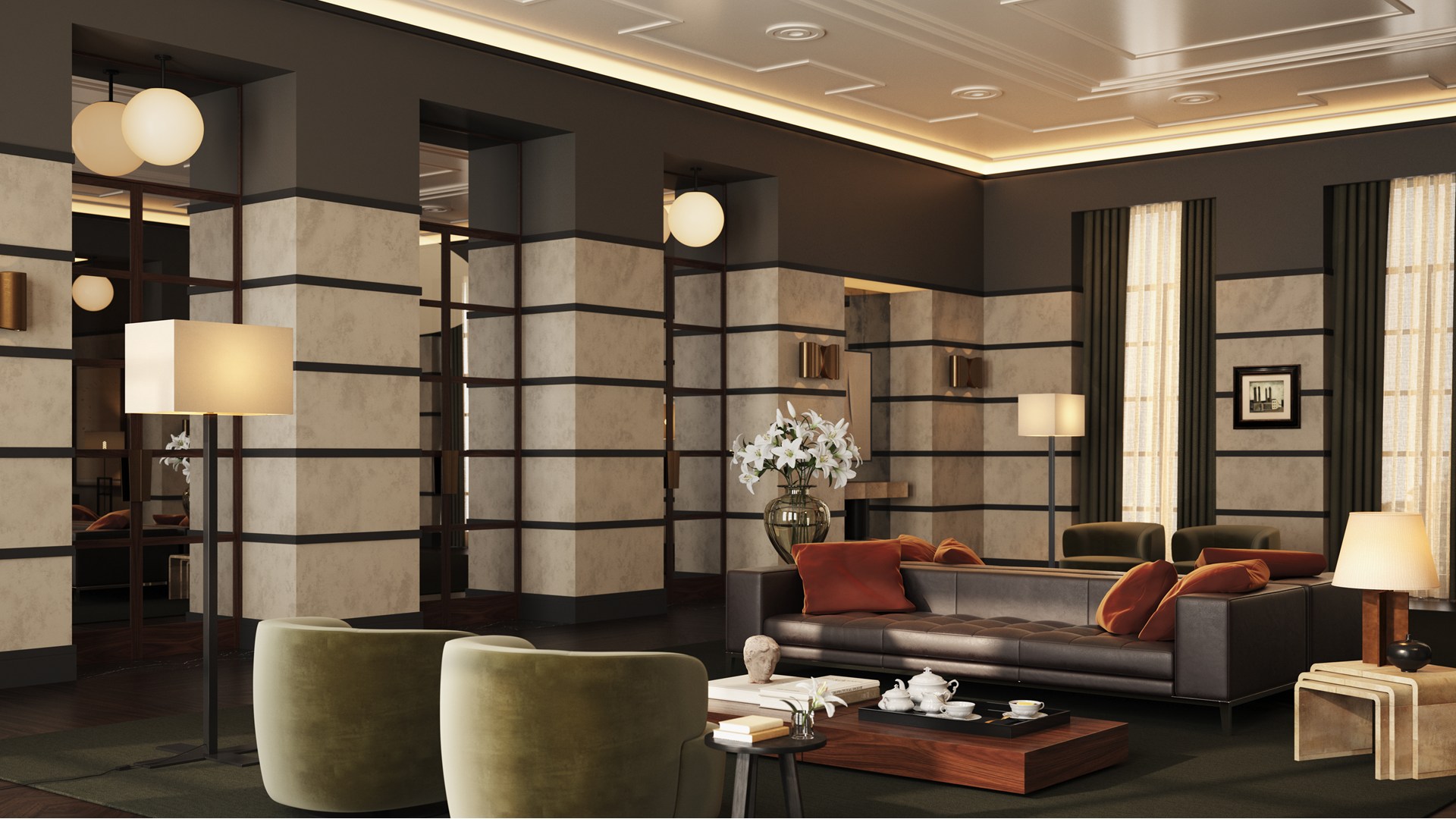 Sebbene non ricreiamo più interni Art Déco nella loro interezza, continuiamo a trarre ispirazione dai loro stili e dettagli distintivi. Se integrati con delicatezza, aggiungono un tocco grafico e senza tempo agli spazi contemporanei.