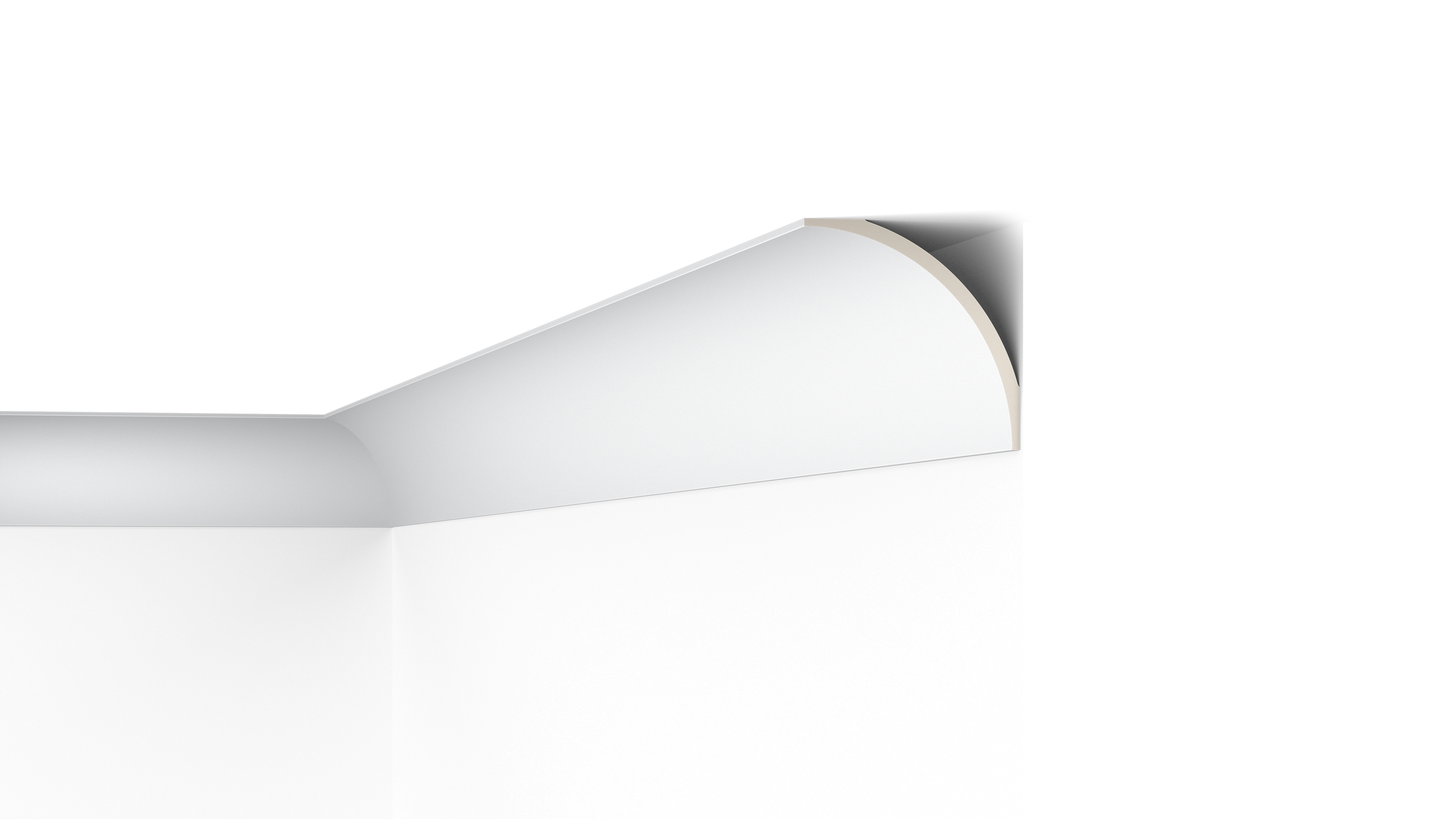 Questa elegante cornice per soffitto aggiunge una sensazione di pienezza e di apertura alla stanza. Questa modanatura AD24 è un design art déco ideale per tutti i tipi di interni. La curva liscia consente una transizione naturale tra la parete e il soffitto.
