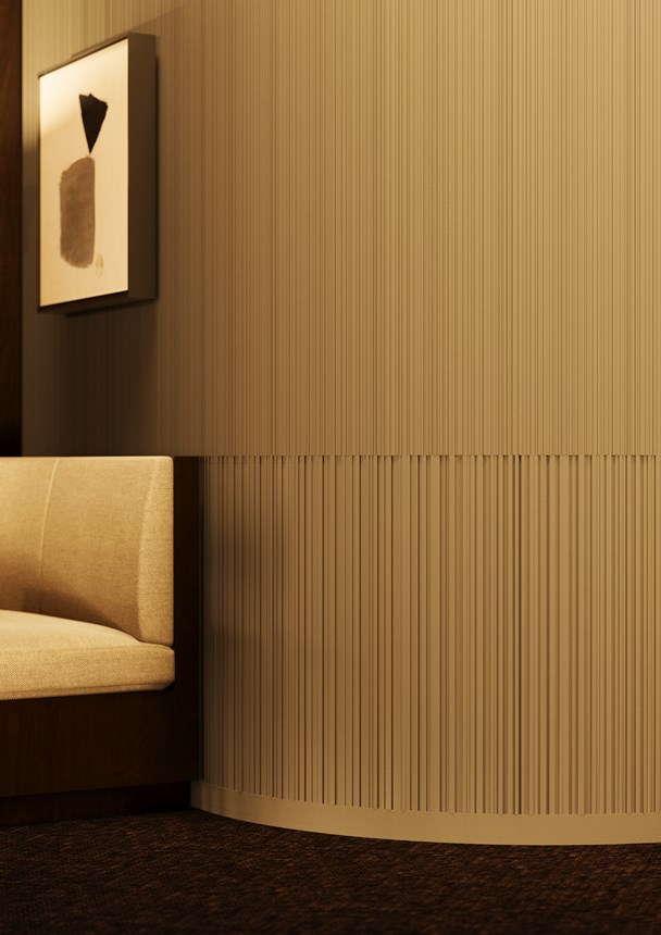 ALLEGRETTINO FLEX trasferisce il ritmo dinamico del design ALLEGRETTINO su superfici curve come pareti arrotondate, soffitti o colonne. Con la sua frequente ripetizione di un motivo lineare e asimmetrico, il pannello a parete ALLEGRETTINO FLEX crea una superficie delicatamente strutturata, sottile e raffinata che esalta il carattere architettonico di qualsiasi interno. Il design, creato dal designer belga Bertrand Lejoly, gioca con la luce e l'ombra per aggiungere profondità e movimento anche alle superfici più irregolari. La soluzione ideale per ottenere decorazioni tridimensionali di forte impatto sia su applicazioni piane che curve.