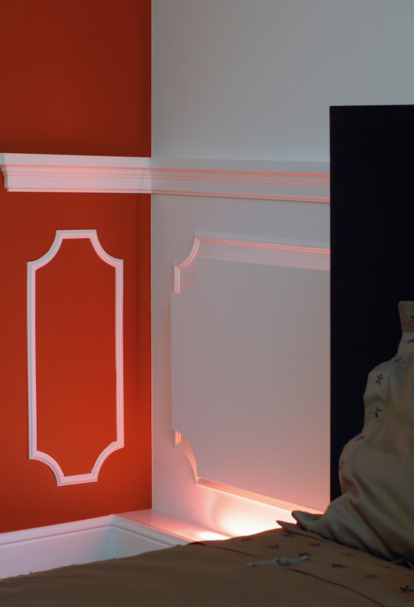 Cornici, cimase per pannellature, battiscopa e decorazioni murali da combinare con una illuminazione diretta o indiretta. Per un ambiente