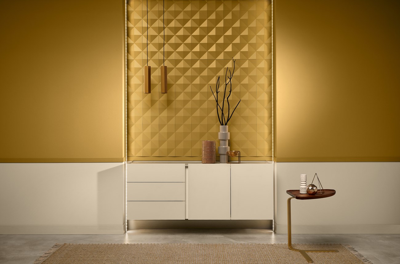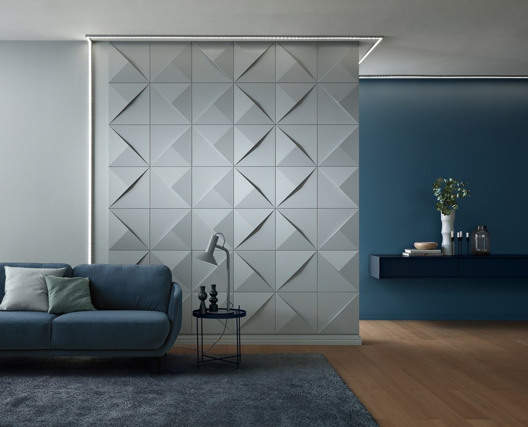 Decorazione murale con pannelli, piastrelle, rosoni e cimase per pannellature, per conferire un tocco di modernità ai vostri interni.