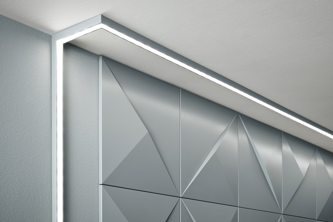 Cornici, cimase per pannellature, battiscopa e decorazioni murali da combinare con una illuminazione diretta o indiretta. Per un ambiente