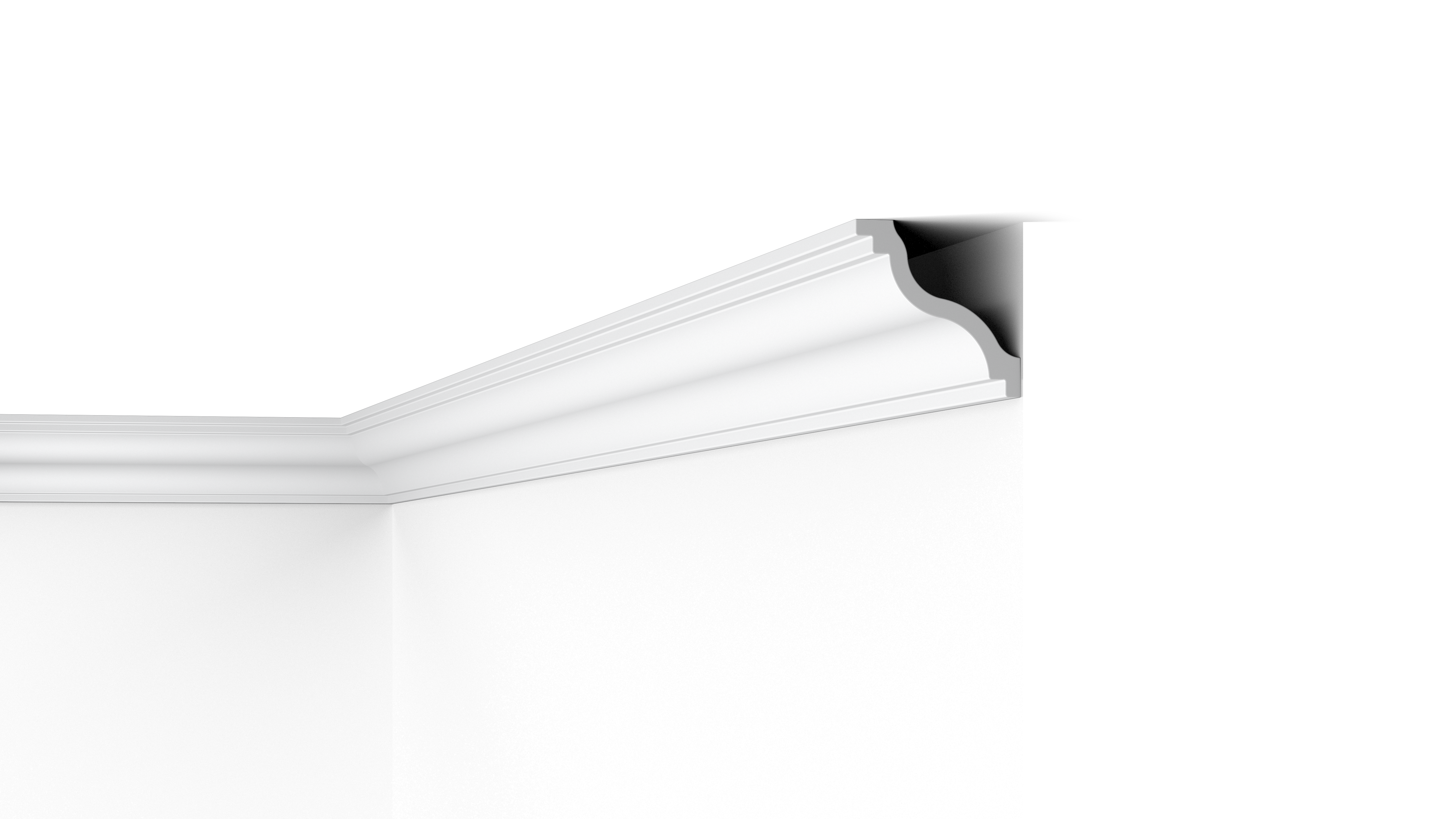 Il profilo curvilineo della SM NOMASTYL® crea una transizione uniforme tra parete e soffitto. La sua forma unica aggiunge consistenza e dimensione agli interni. L'uso di dettagli lineari nella cornice SM NOMASTYL® fa da complemento alle forme geometriche tipiche di zone living e cucine.