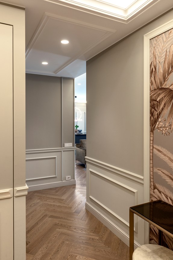 Cornici, cimase per pannellature, battiscopa e decorazioni murali da combinare con una illuminazione diretta o indiretta. Per un ambiente