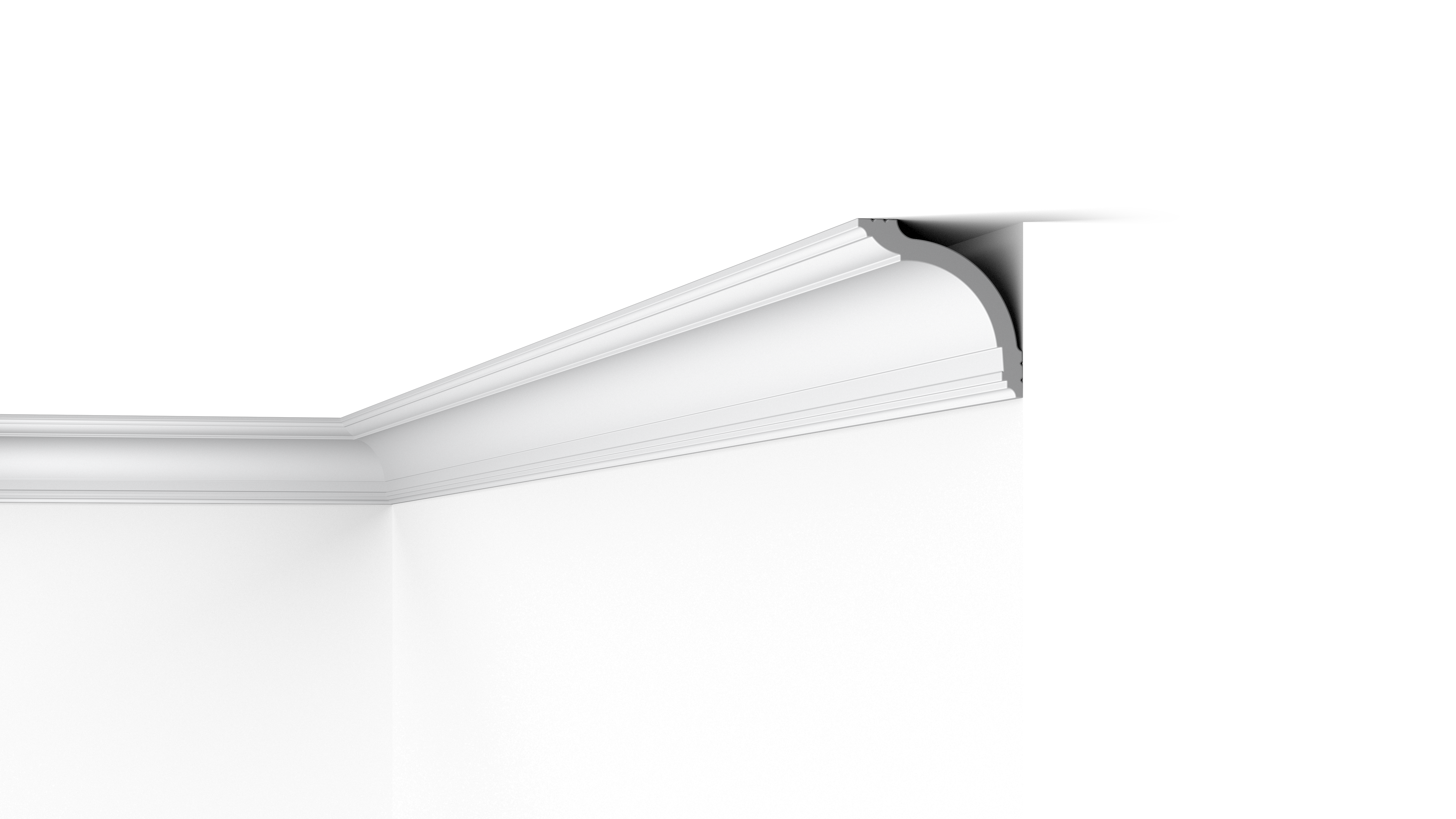 Lo spazio che rimane dopo la posa della cornice consente di nascondere i cavi ed eventuali screpolature e transizioni imperfette tra parete e soffitto. Inoltre, il materiale della cornice, polistirene ad alta densità, resiste agli urti ed è facile da tagliare e posare. L'HDPS è inoltre un materiale resistente all'umidità ed è pertanto possibile posare la cornice anche in ambienti umidi, come cucine e bagni, senza rischiare alcun danno. Le cornici WT17 WALLSTYL® vengono inoltre fornite con uno strato di primer già applicato e quindi già pronte per essere verniciate in qualsiasi colore.