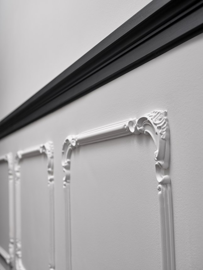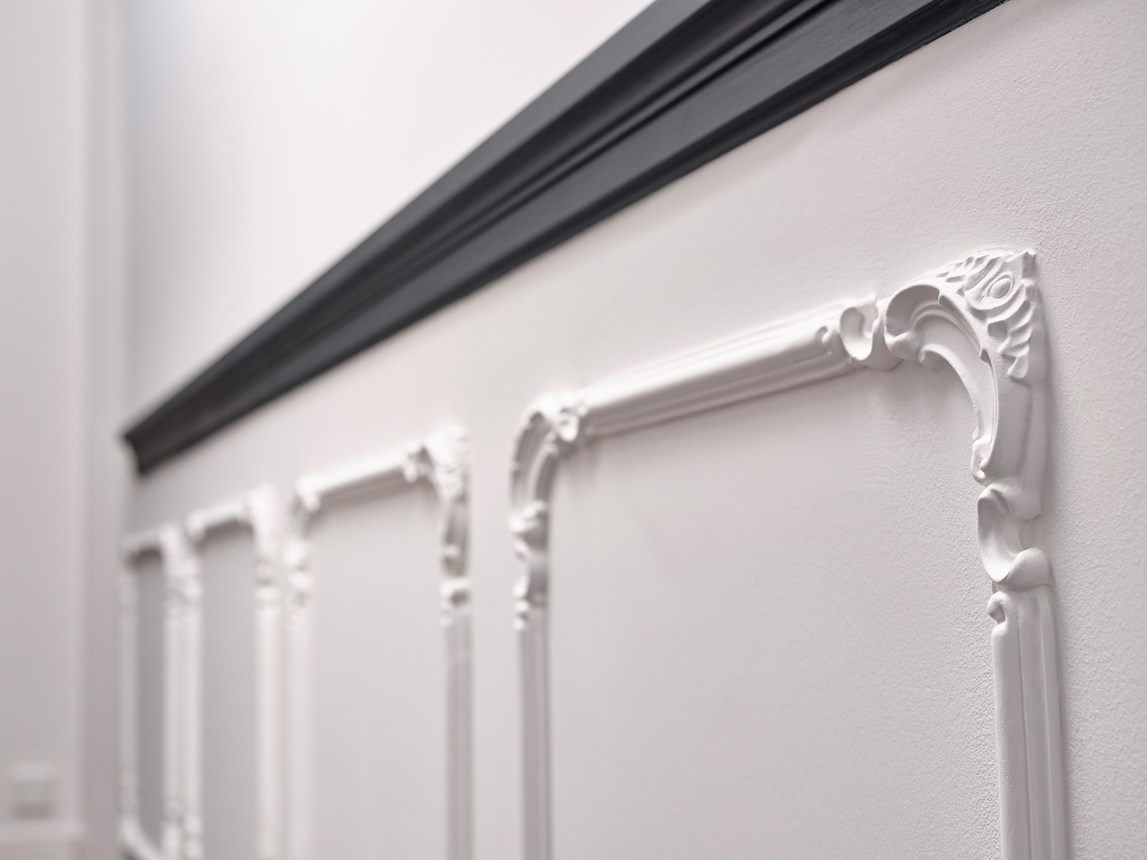 Decorazione murale con pannelli, piastrelle, rosoni e cimase per pannellature, per conferire un tocco di modernità ai vostri interni.