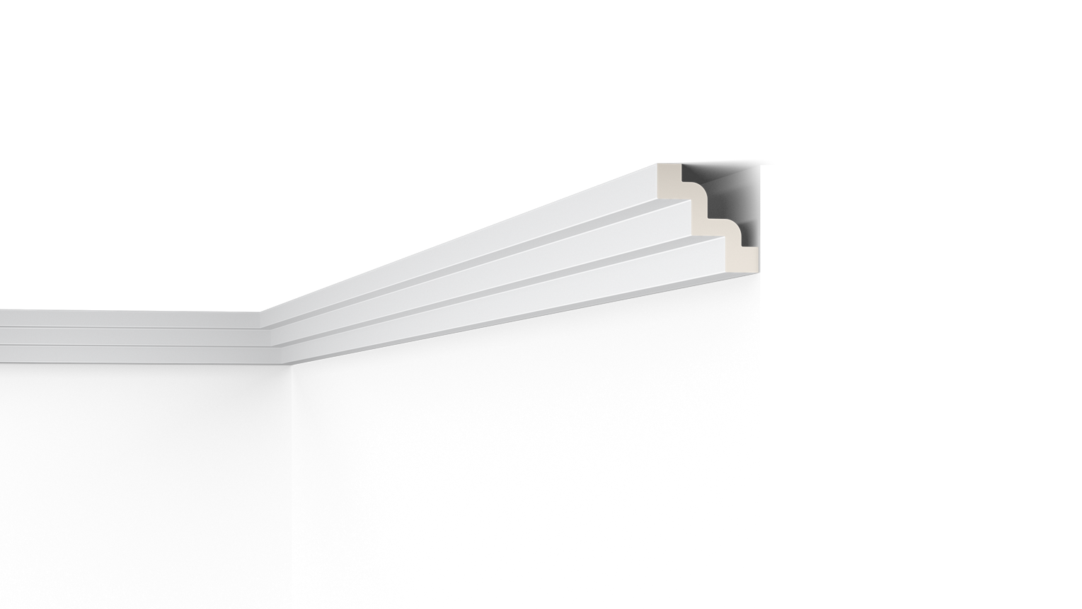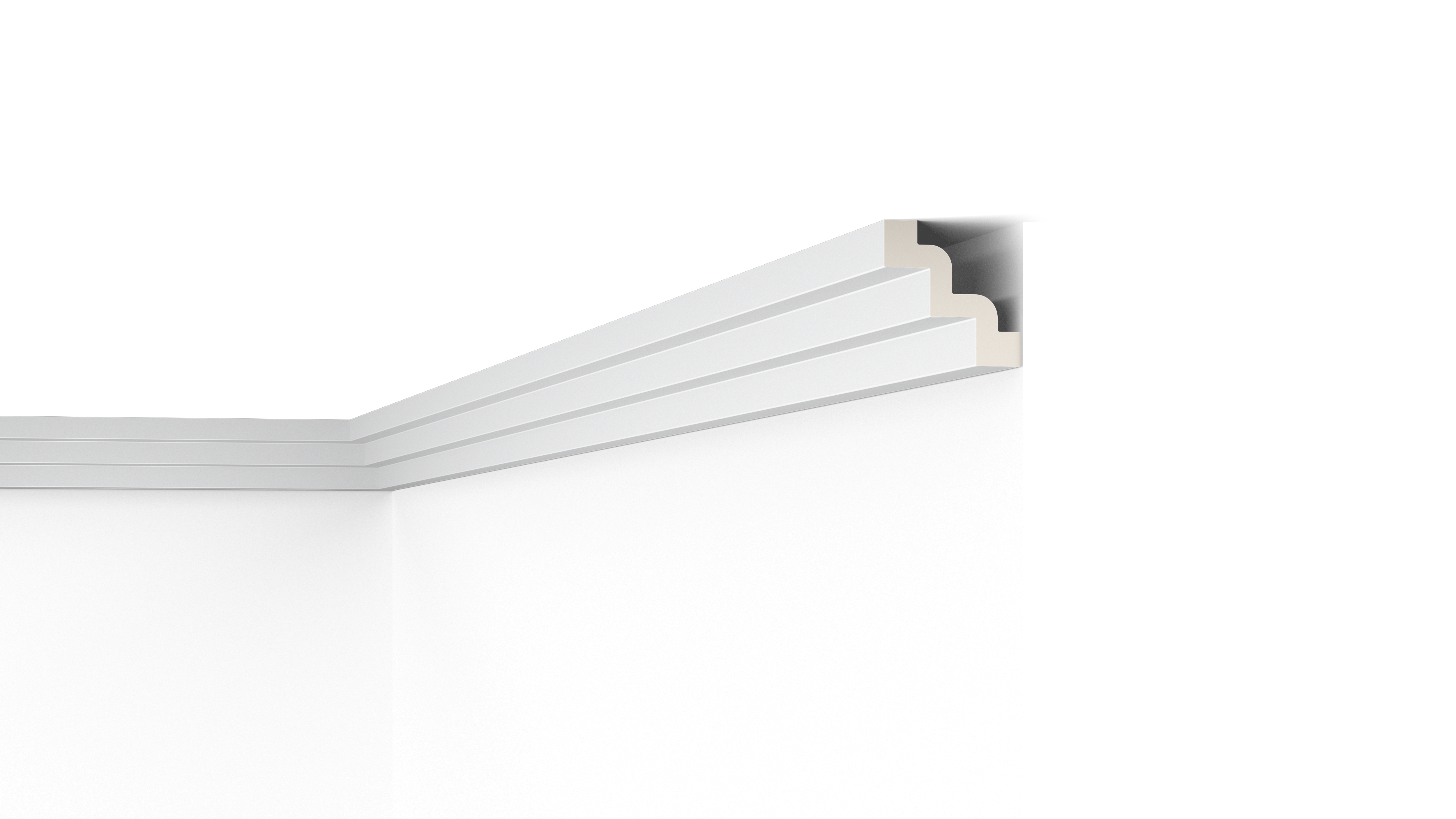 La Z52 presenta un design cubico e utilizza linee decise e parallele. La forma geometrica e graduata crea una transizione fluida ma audace tra parete e soffitto. Questa graduazione genera blocchi netti di ombra e luce sulla cornice, che aggiungono consistenza e fascino all'ambiente. La cornice Z52 è adatta a bar e ristoranti, ma anche a interni residenziali.